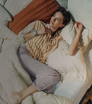 Once you're in bed, set the Apollo wearable to the Sleep Vibe. We recommend starting at 40% for 30-60 minutes.
